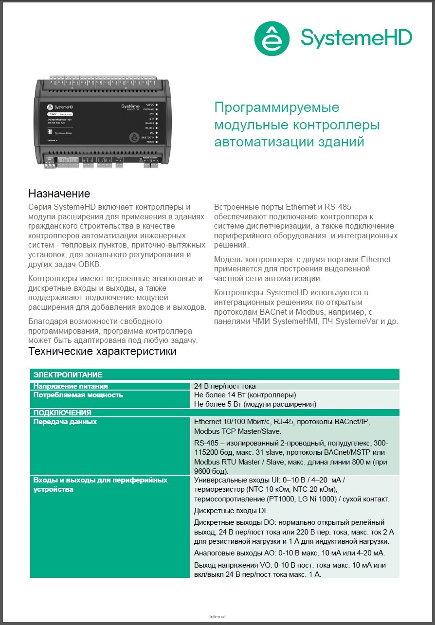 Свободно программируемые модульные контроллеры для автоматизации инженерных систем зданий, со встроенными входами/выходами и модулями расширения, портами Ethernet и RS-485, поддержкой протоколов BACnet и Modbus.
